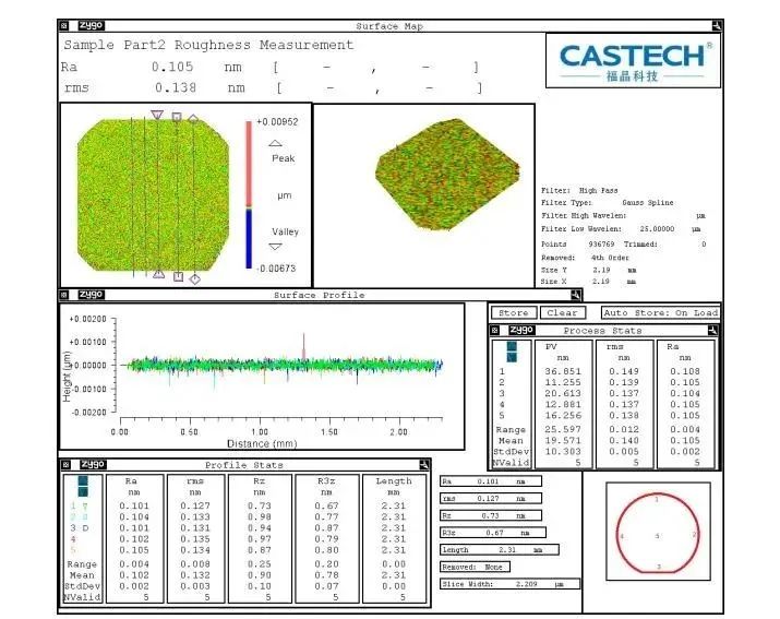 Figure 4. CASTECH Ultra-Smooth Surface Product Measurement Results Using Zygo NewView 8300